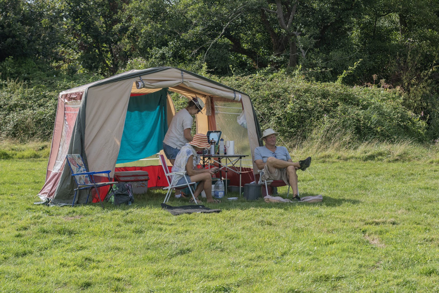 VW-sized campervans and tent-only campers in the same party can all camp together whether woodland camping or glamping. Anyone renting one of our iconic, hassle-free bell tents will also be placed alongside the rest of their party.