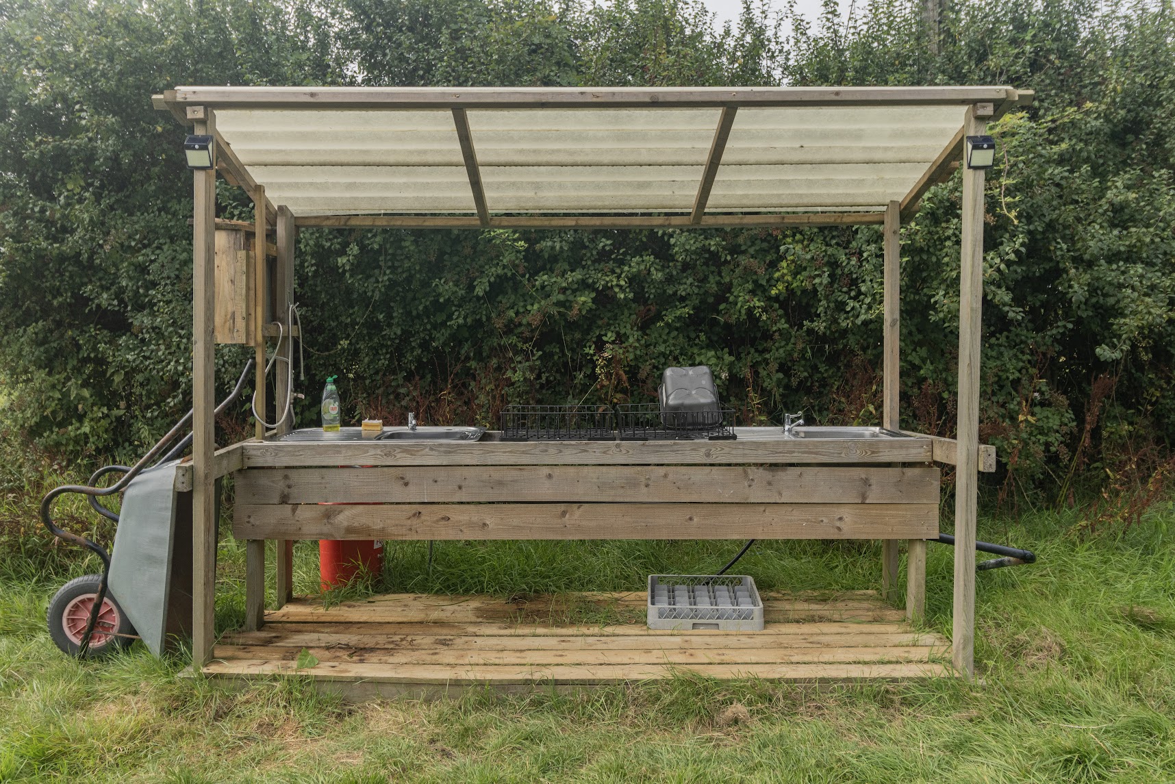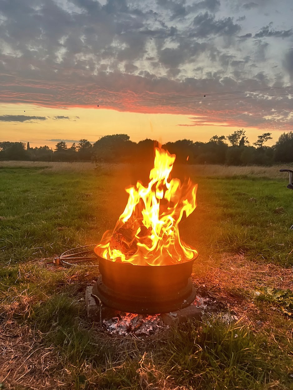 Cooper’s Hatch Campsite is in a silent L shaped field, surrounding by glorious woodland and with plenty of space for groups to spread out in. There are lots of large open and tree covered areas that provide plenty of private space, and our signature mown out crop circles, make it feel like you are the only ones there! There are different areas designated for families, groups and individuals, and everyone has access to a private firepit. Well behaved dogs on leads are welcome, as are VW style vans, who can camp alongside others in their group without a van. You can park alongside your camping area saving you from long heavy trips back and forth to the car. The large and diverse camping area, bordered on one side by ancient woodland and on the other by open farmland means there are easily separated adult and family-friendly areas. This makes it a great choice for adults seeking solitude and families with young explorer, who are looking to make camps and build dens in a safe but independent environment. The campsite is pastureland and satisfyingly off grid, but with fresh drinking water, hot water showers and modern eco toilets. Every pitch has its own campfire and privacy is guaranteed.